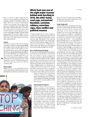in “witch-craft” cases in 2016 alone, with quent incidents of mob lynching have Among several cases of witch-hunt enact a law against witch hunt and other ances. Lack of proper medical facilities organisation, said since there is no spe-