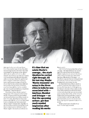 Minto, when he had travelled to New mentally fragile, that’s just not true. No, his marriage he was devoted to his wife salute Manto’s courage... the stark idealism he carried