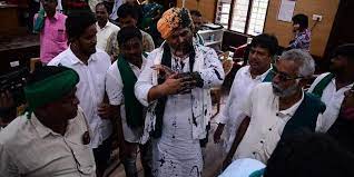 Black ink thrown on farmers leader Rakesh Tikait in Bengaluru