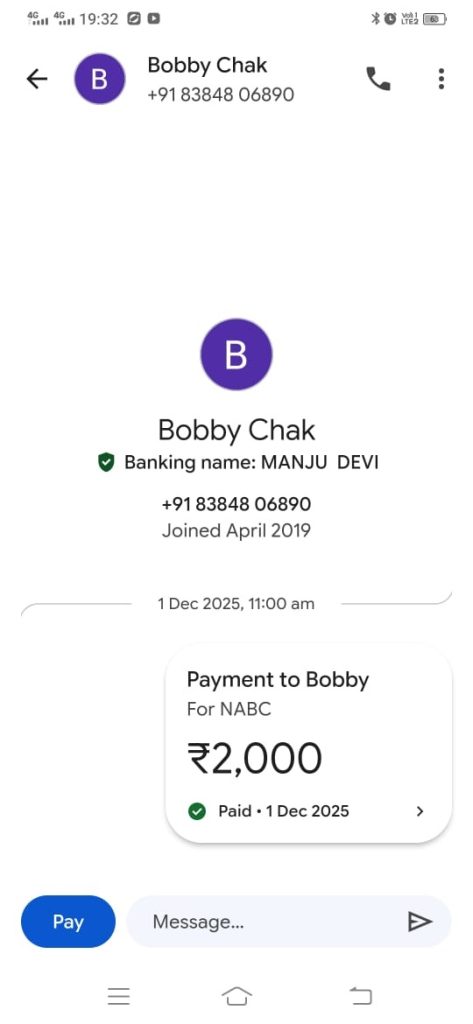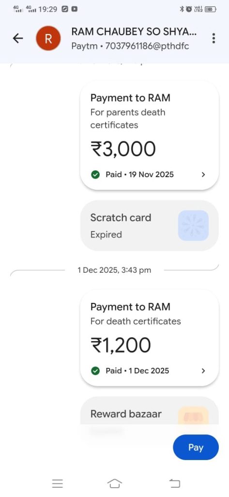 Bobby then demanded Rs 5,000 as a bribe for the NABC. We paid him Rs 3,000 online and agreed to give the remaining Rs 2,000 after receiving the NABC. The following discussion also reveals that the NABC cannot be issued without showing the death certificates first.
