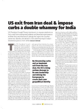 Islamic State currently on the wane. By tions on Tehran, covering companies ing nuclear-related economic sanc- Trump has always been a critic of hard line will give Trump an upper For India it is like “to be or not to be”