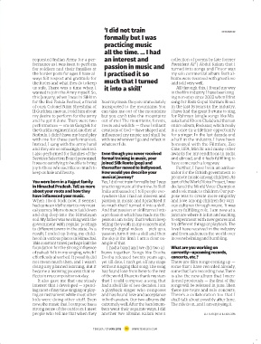 that are close to his heart and special concerts or booked tickets but couldn’t selfless creatures. I have also done sev- had quite an idyllic start to my musi- so much that I turned it into a skill. ous cultures through music. It was